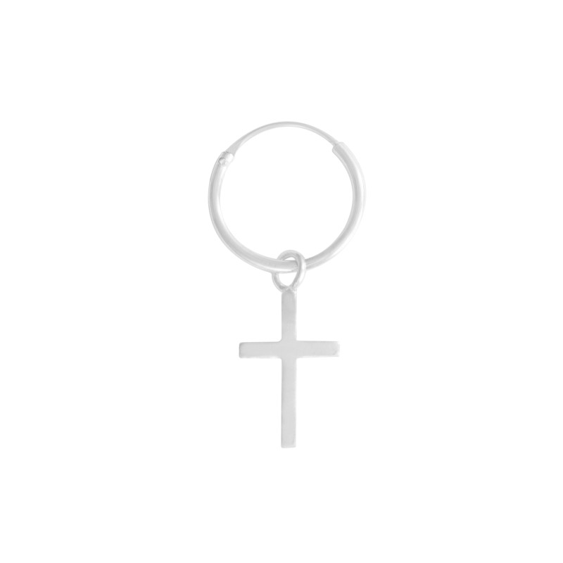 Arito de plata de ley con cruz mediana ideal para primer o segundo agujero. Una pieza muy cómoda y discreta.